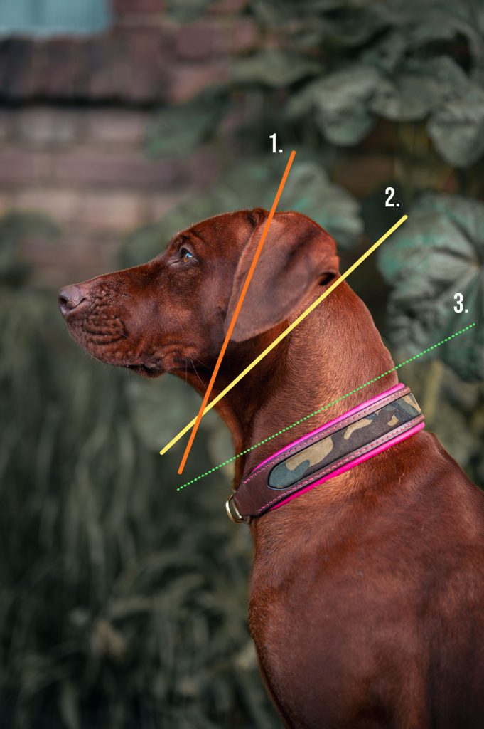 Das optimale Maß kannst du spielend einfach ermitteln. Alles was du dafür brauchst ist ein flexibles Maßband (Schneidermaßband) und eine ruhige Umgebung. Die drei von uns benötigten Maße für dein Halsband ermittelst du wie folgt: